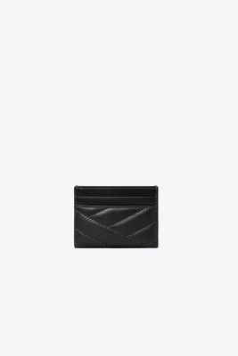 The Kira Card Case is made of soft chevron-quilted leather with beveled Double T hardware. It’s perfect for commuting, meetings and swapping out bags.