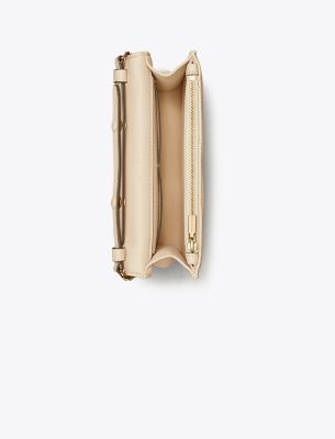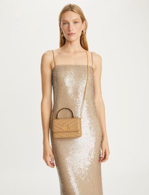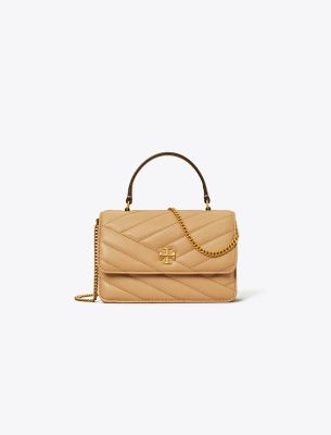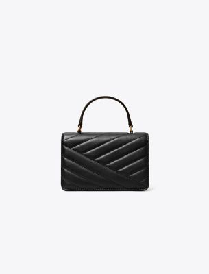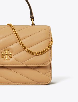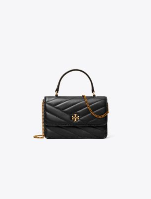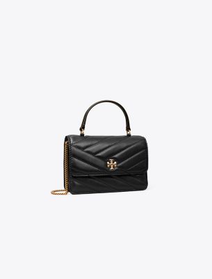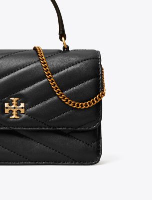 The Mini Kira Top-Handle Chain Wallet is made of soft chevron-quilted leather and features our Double T as graphic turn-lock hardware. Carry it by the top handle or with the chain shoulder strap.
