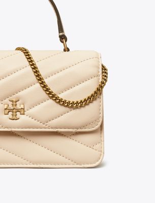 Kira Chevron Mini Top Handle Chain Wallet – New Cream