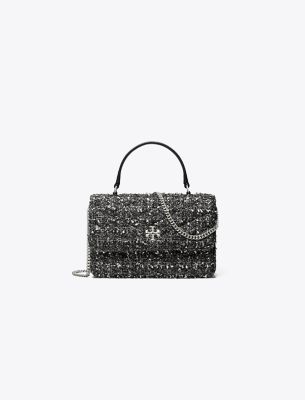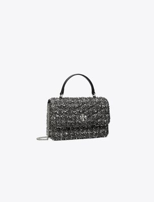 Kira Chevron Tweed Mini Top Handle Chain Wallet – Black Multi
