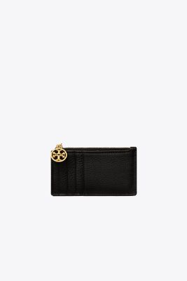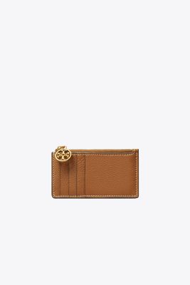 A striking expression of workmanship and artistry. The Miller Top-Zip Card Case is made of natural-grain leather, with our signature Double T, and has a zippered pouch and multiple pockets to keep cards organized.
