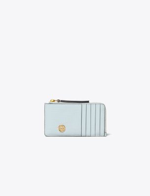 From our collection inspired by Tory’s parents, Buddy and Reva Robinson. Inspired by their love of travel, the timeless, versatile silhouettes are designed for everyday use. Our Robinson Top-Zip Card Case is made of polished embossed leather, with a zippered coin pouch and multiple pockets.