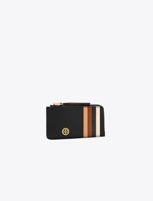 From our collection inspired by Tory’s parents, Buddy and Reva Robinson. Inspired by their love of travel, the timeless, versatile silhouettes are designed for everyday use. Our Robinson Top-Zip Card Case is made of soft pebbled leather, with a zippered coin pouch and multiple pockets.