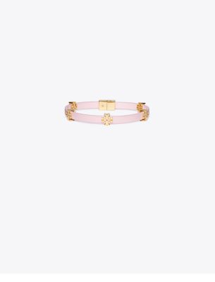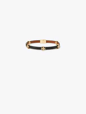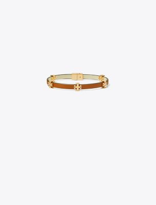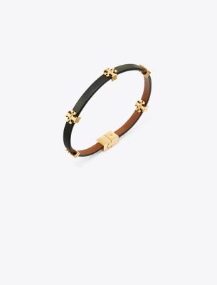 Signature jewelry. The Eleanor Bracelet combines iconic Double T hardwarewith a leather cuff for a rich mix of textures. Wear on its own or stacked with other bangles and watches.