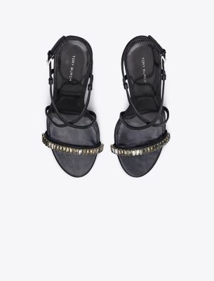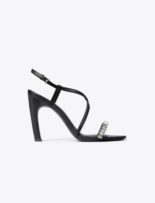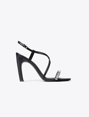 An elegant profile detailed with crystal embellishments, our strappy heeled sandal is a statement shoe designed to add modern glamour to any look. Crafted in soft leather.