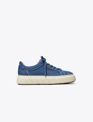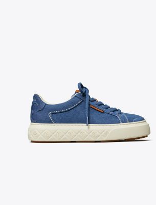 If a ladybug lands on you, it’s good luck! The Ladybug Sneaker’s exaggerated sole is dotted with our T Monogram to mimic the beloved bug’s signature spots. Hand-stitching on the denim upper honors old-school craftsmanship. Tory’s love of tennis is translated in the sole’s clever net-like pattern. And the serif curves of our Double T are abstracted at the heel. A retro style with pumped-up volume.