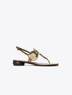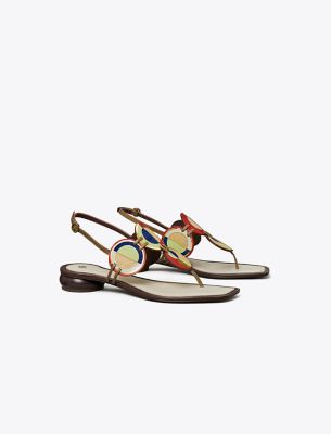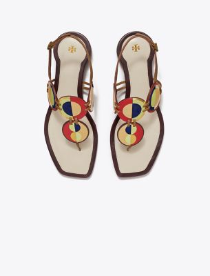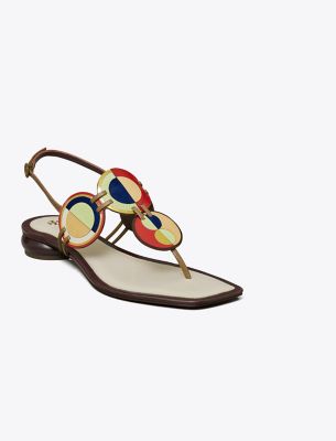 An abstract-inspired design, utilizing a meticulous assemblage of materials. Our Marquetry Disk Sandal is a geometric take on a classic thong sandal, featuring contrast colors in a mix of leather and suede. With a disk heel and cushioned leather footbed.