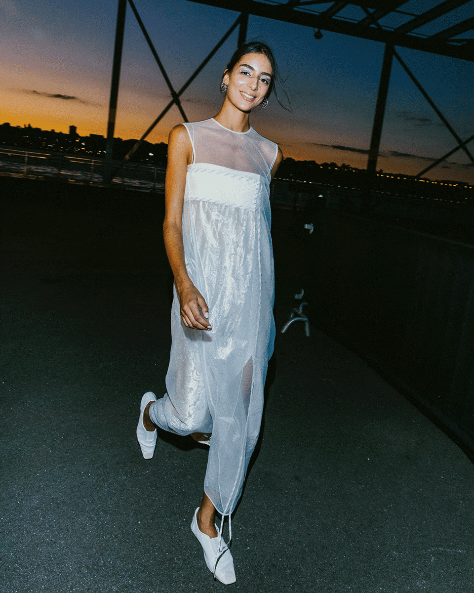 Tory moved to New York and began working in fashion in the 1990s. That seminal decade informed the collection’s streamlined shapes. But look closer and there’s a subtle richness within those stark lines: texture, translucence, embellishment.